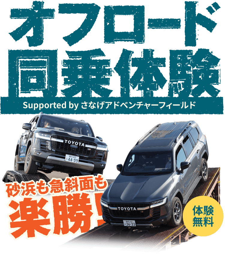 トヨタの四輪駆動車に同乗し、迫力ある走行を体感いただけます。