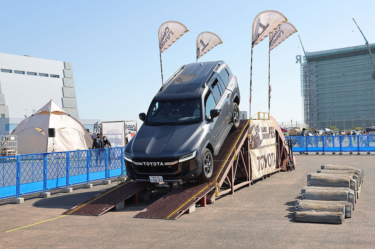 会場内に設けたオフロードコースを、ドライバーが運転する