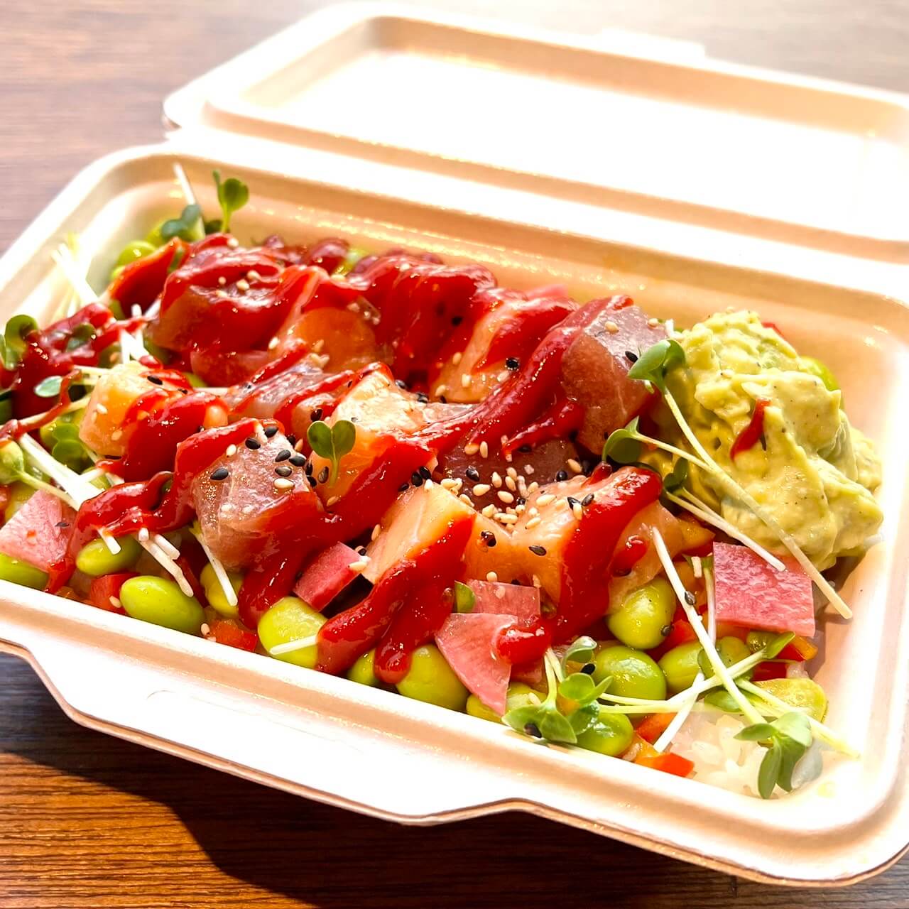 『牛タンタコライス』は、沖縄料理のタコライスに独自の工夫を加えた逸品です。お肉は牛タンを100%使用し、子供から大人まで楽しめるよう、スパイシーだけど辛くない味付けにこだわりました。