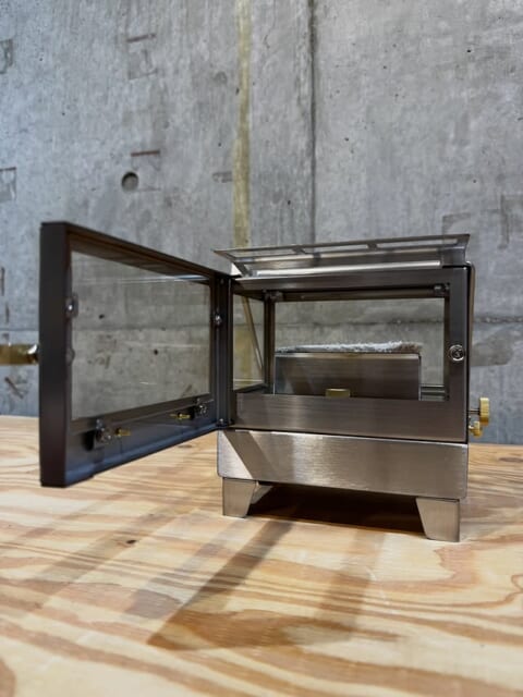 卓上サイズで本体の4面すべてに大きなガラスを採用し、どの角度からでも炎の揺らぎを鑑賞可能。