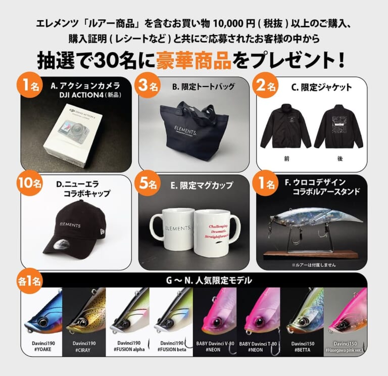 「ELEMENTSルアー+他社製品」合計1万円(税抜)以上お買い上げの方🎣